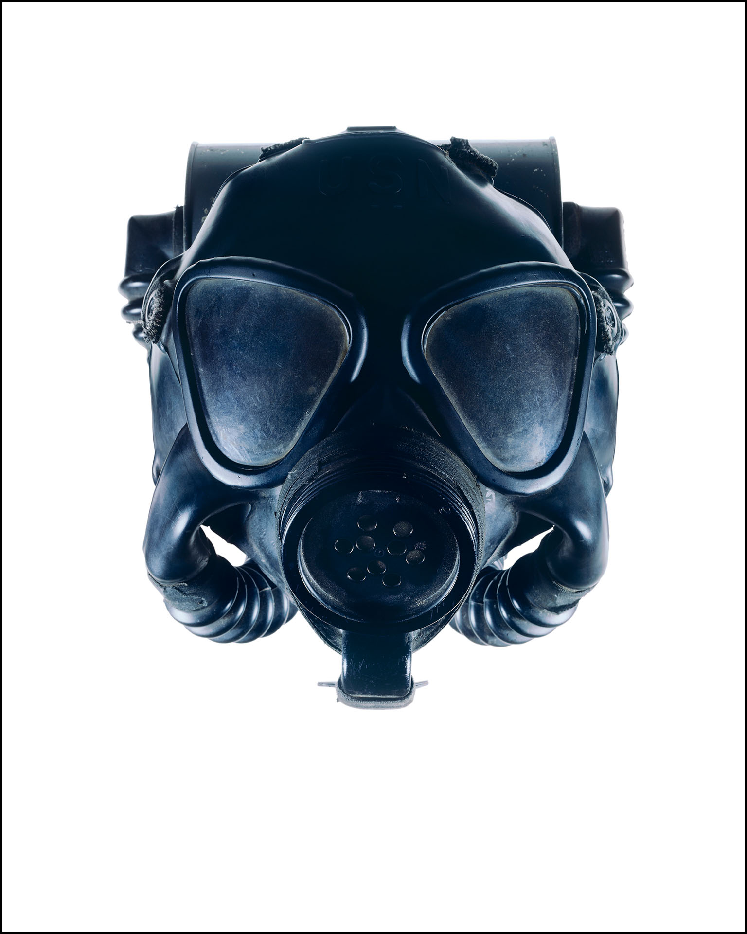 Although gasmasks are constructed for protection, you associate them with war, nuclear contamination and lethal gas.